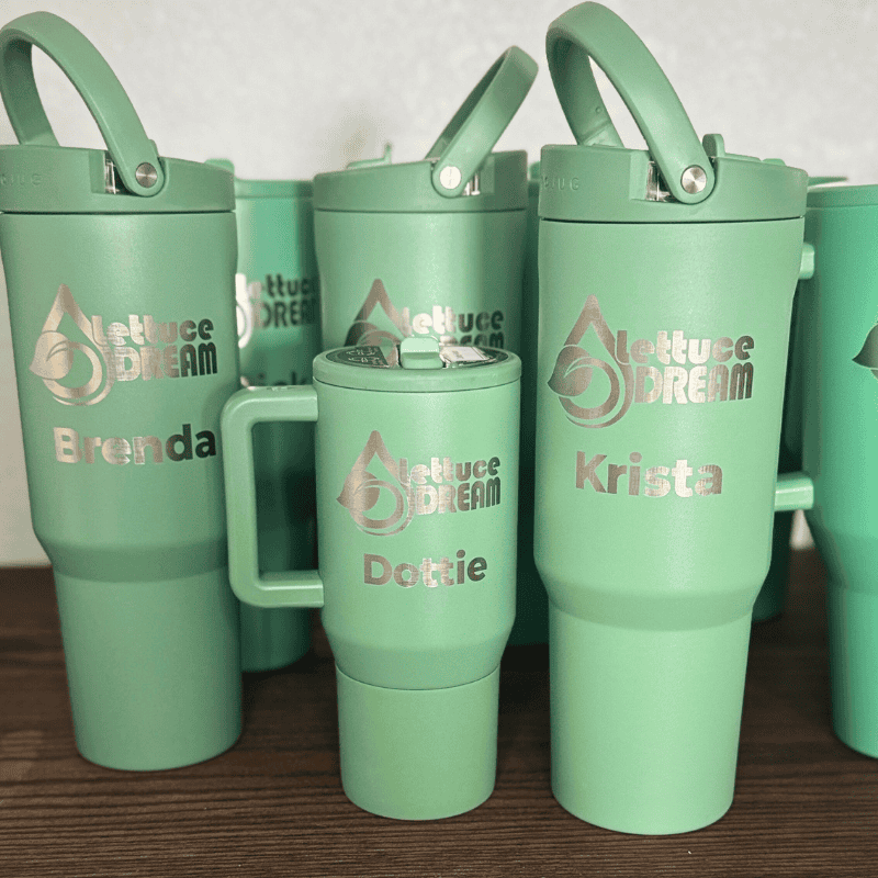 Bring me your tumbler (Owala, Stanley-style, Hydro Jug, off-brand — you name it!) and I’ll professionally laser engrave it right here at Blue Fox Designs.