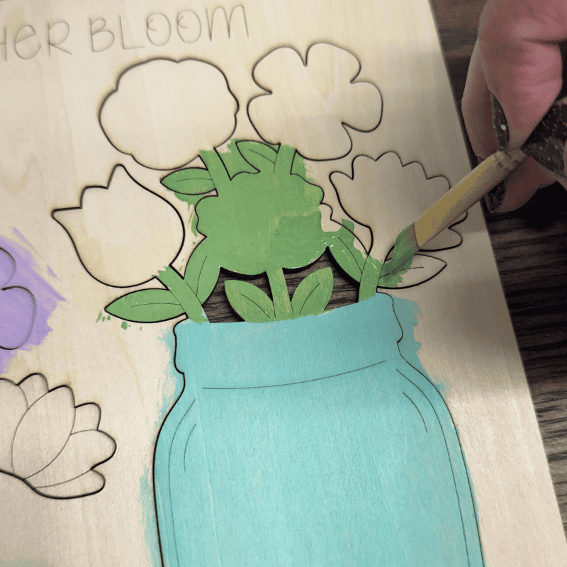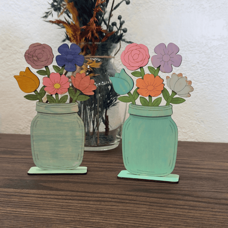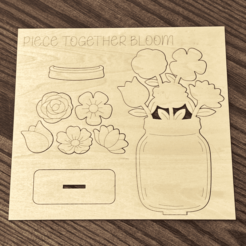- Pre-cut wooden board with all flower and jar pieces
